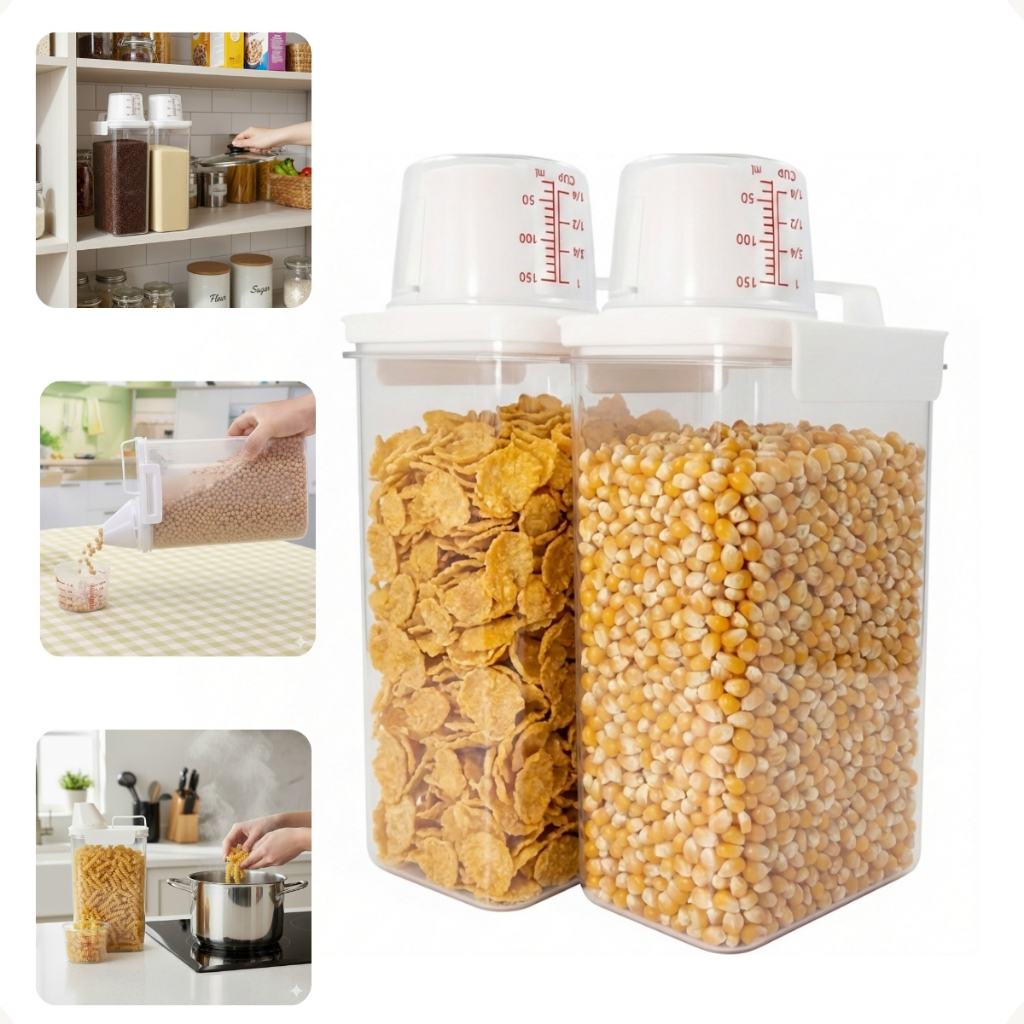 Pote Dispenser Organizador Porta Mantimentos Produtos Limpeza Bico Copo Medidor Dosador