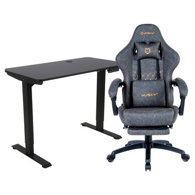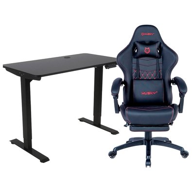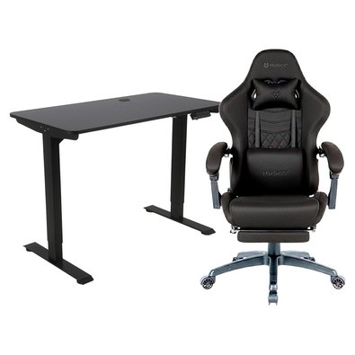 Kit Mesa Office Husky Zenith 900 PRO + Cadeira Gamer Husky Tempest 700, Até 145kg, Almofadas, Reclinável 150º, PU, Descanso para Pés, Preta
