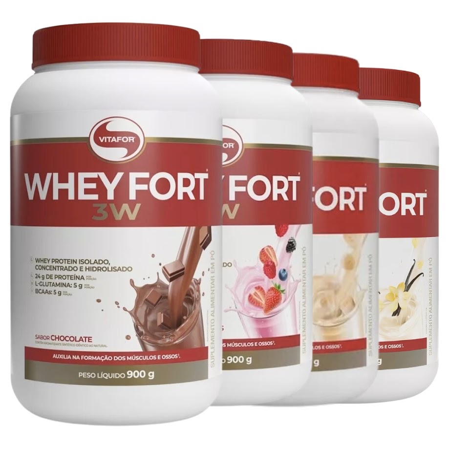 Whey Fort 3w 900g Vitafor Isolado Concentrado Hidrolisado