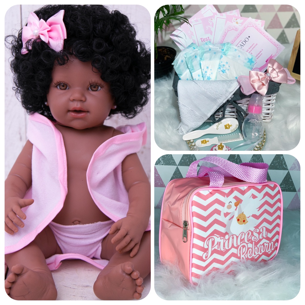 Bebê Reborn Silicone Negra Pode Dar Banho + 22 Itens Bolsa