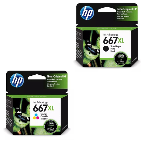 Kit Cartucho Hp 667xl Original Preto+color Para 2376, 2774