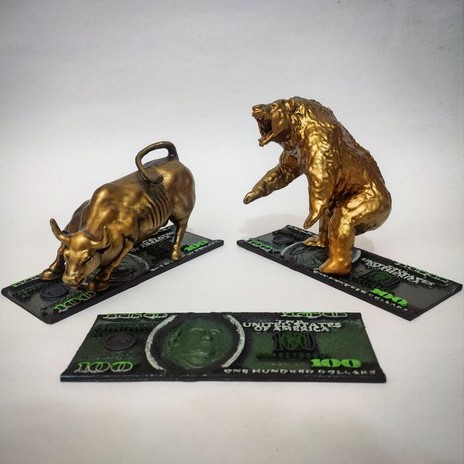 Touro e Urso de Wall Street Kit ou individual, Dolar Exclusivo Realista Enfeite Ouro Mercado Financeiro, Mini Decoracao Presente Escritório (Muitas Variedades)