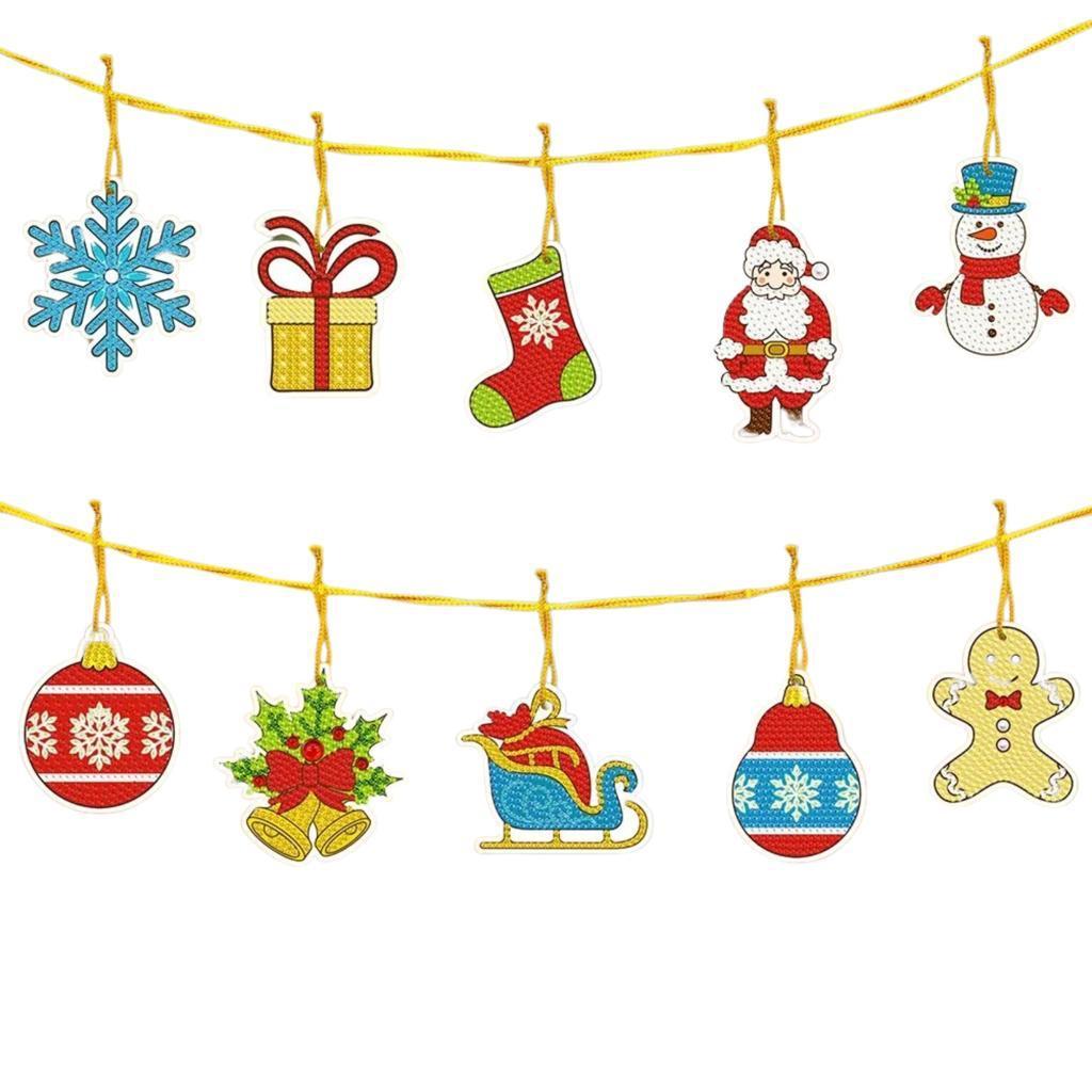 Kit 9 Peças de Enfeite de Natal de Pintura de Diamante 5D DIY Para Arvoré de Natal Lembrança de Natal Amigo Secreto Papai Noel Rena Boneco de Neve Caixa de Presente de Natal