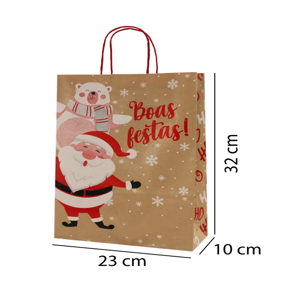 Sacola para Presente / Kraft Estampa Natal ou Pascoa - Kit 10 Unidades 32 x 23 x 10 - Alta Qualidade