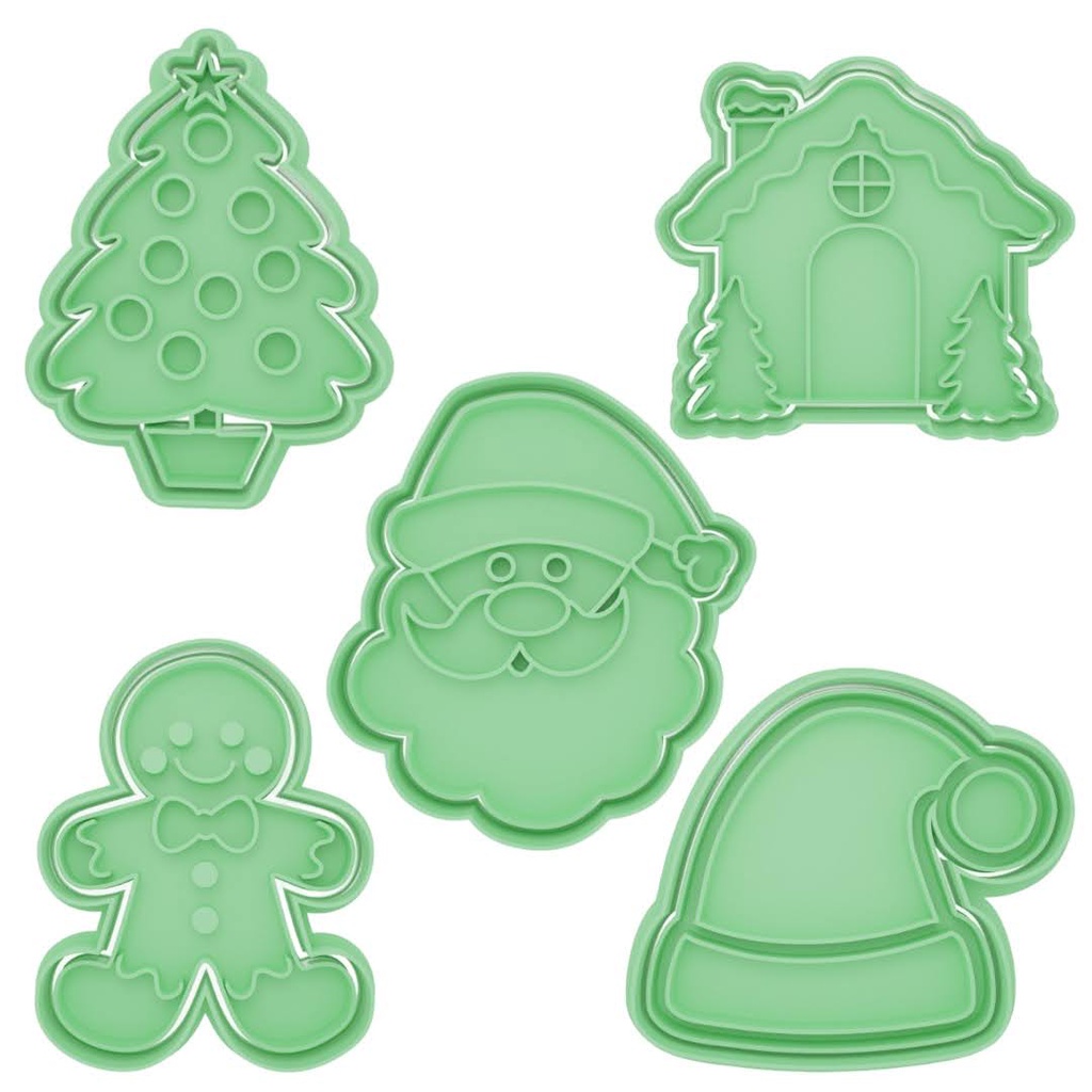 Kit 5 Cortador Marcador Cookie Natal Papai Noel Presente 5cm