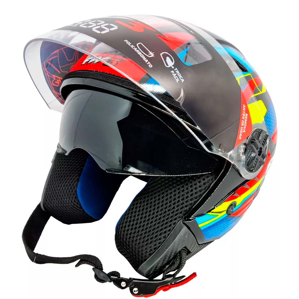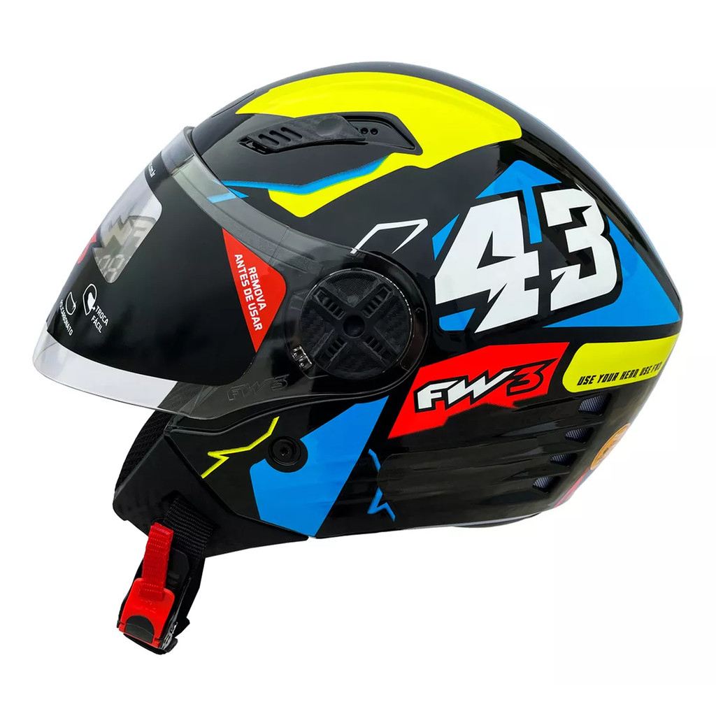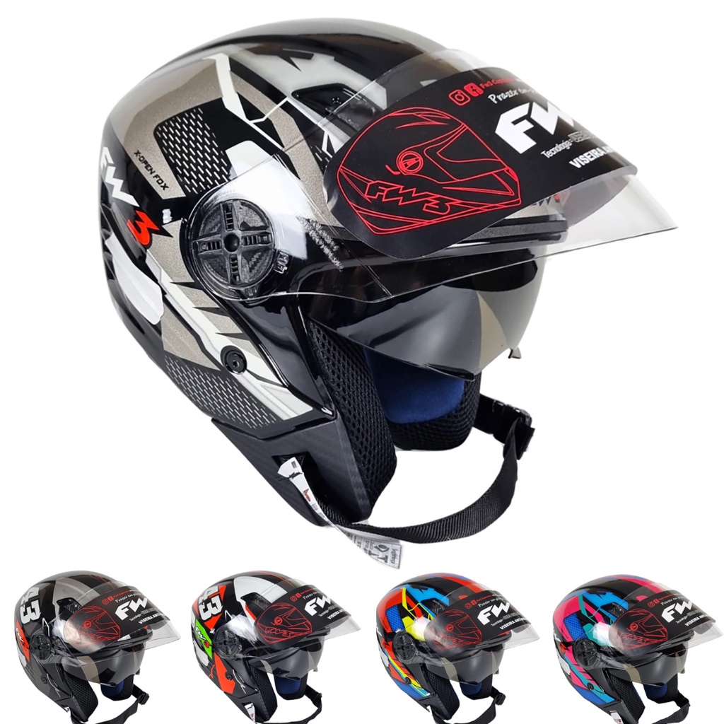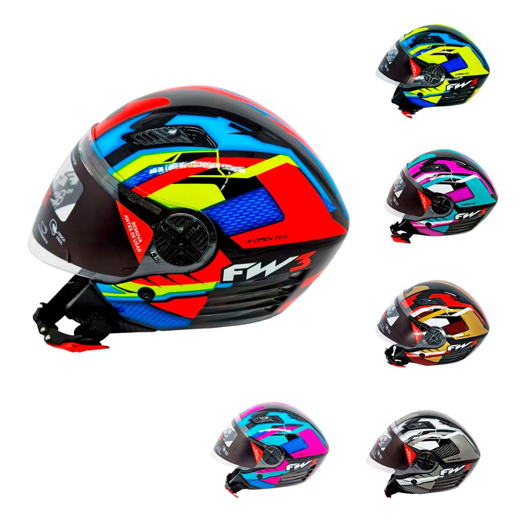 Capacete Aberto Fw3 X Open UP Fox Cores Oculos Viseira Moto