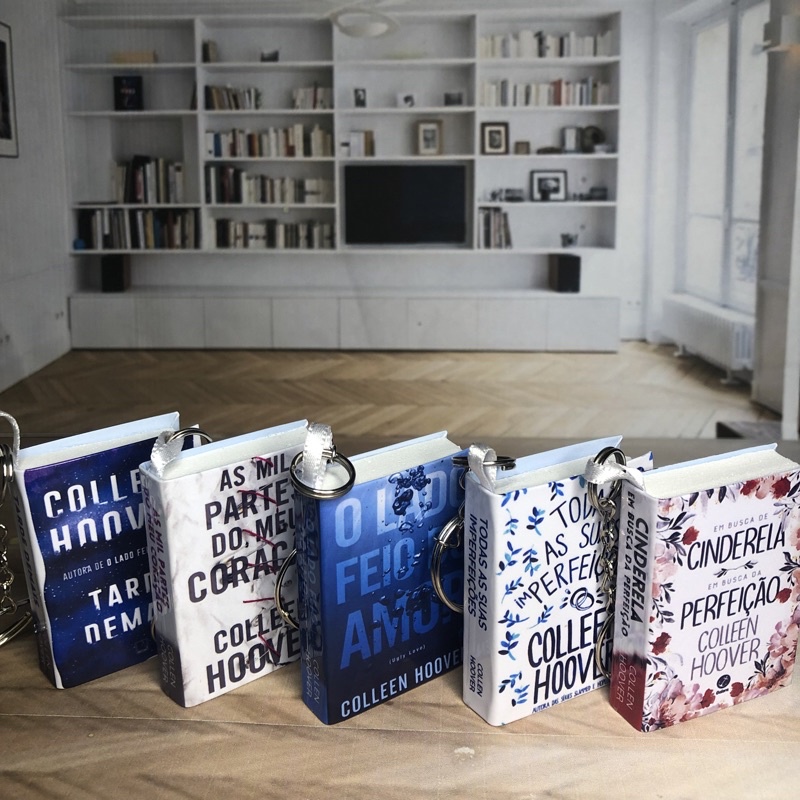 mini livros chaveiros, É assim que acaba/todas as suas imperfeições/o lado feio do amor/mil partes do meu coração/até o verão terminar /tarde demais/Cinderela em busca de perfeição/book