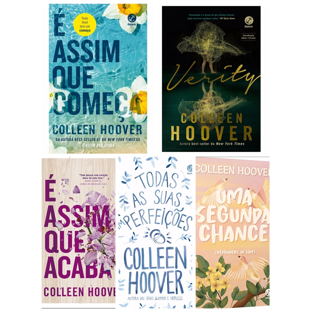 Livros Colleen Hoover, LACRADO, é assim que acaba, é assim que começa, todas as suas imperfeições, verity, uma segunda chance