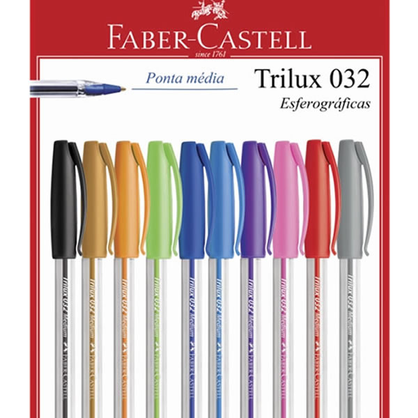 Caneta Esferográfica Média Trilux 032 Ponta 1.0 mm - Faber-Castell | Caneta Colorida | Material Escolar | Papelaria