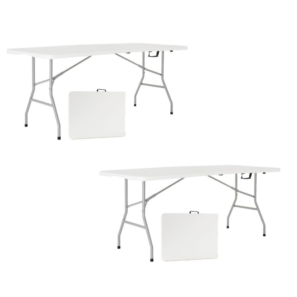 Kit 2 Mesa Picnic Branca 1,80m Dobrável Vira Maleta Portátil