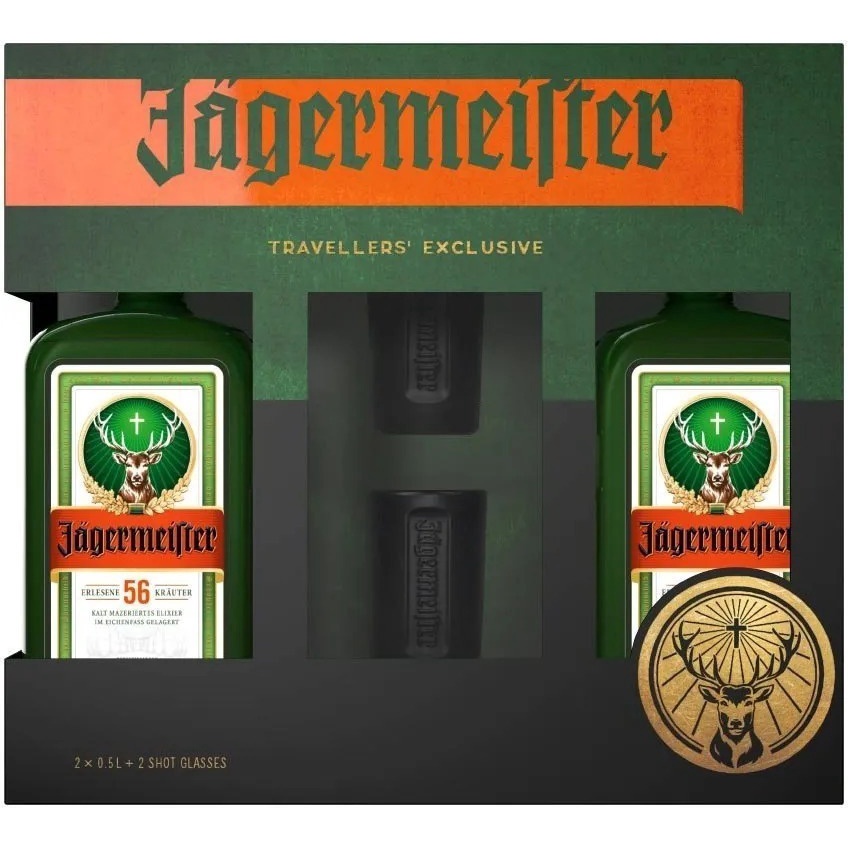 Kit Presente Licor Jagermeister Pack 2un.500 Ml + 2 Shots
