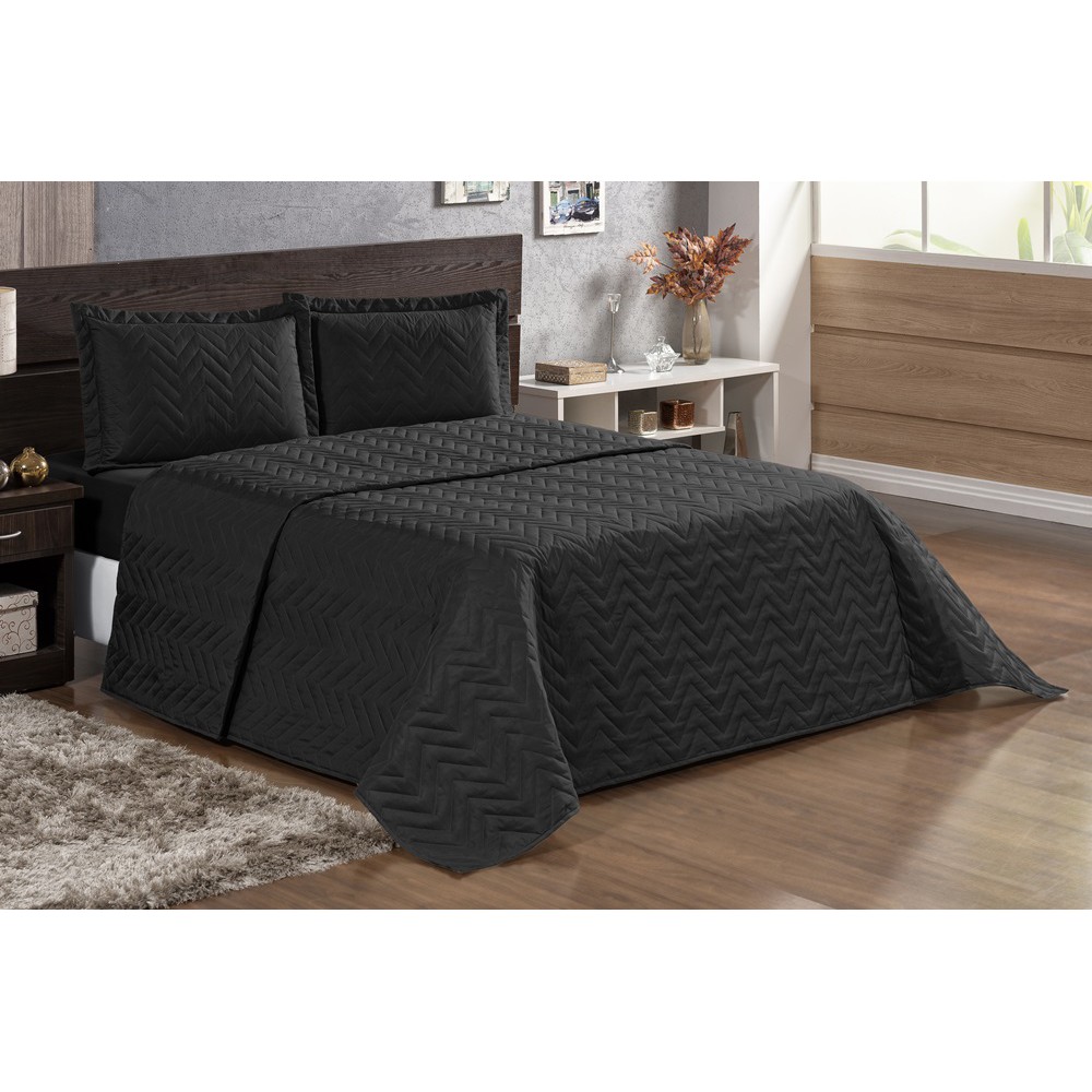 Kit Cobre Leito Pratic Cama Padrão 3 Peças Matelado Preto