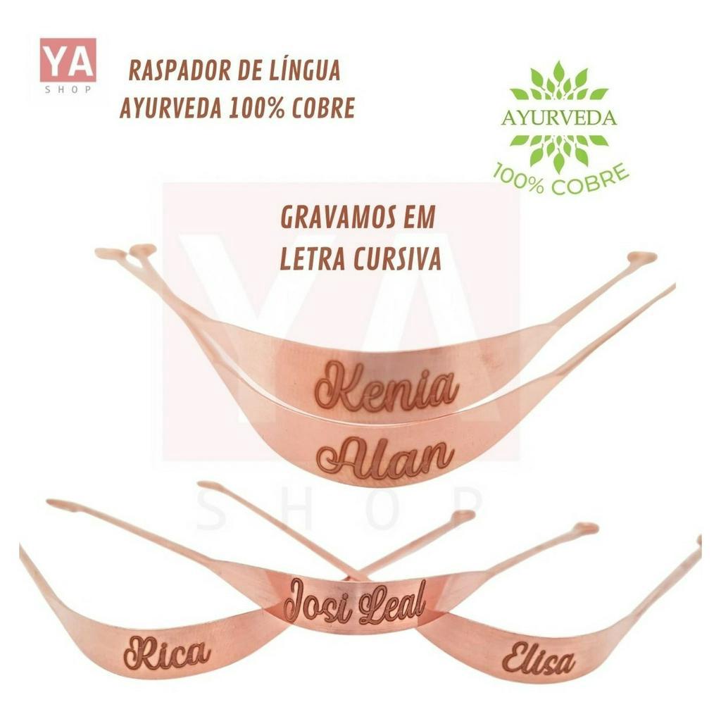 Limpador Raspador de Língua Personalizado 100% Cobre Puro Ayurveda Higienizador Para Raspagem Lingual Higiene Saúde Bucal