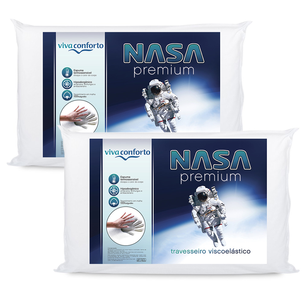 Kit Jogo 2 peças Travesseiros Nasa Macio Original Capa em Algodão Viva Conforto Altura 10cm