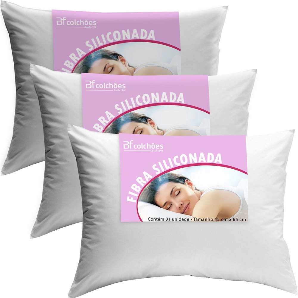 Kit 3 Travesseiros Fibra Siliconada Antialérgico 45x65cm BF Colchões