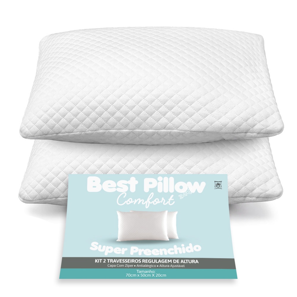 Kit com 02 Travesseiros Regulagem de Altura 70cm x 50cm hotel cama casal com ziper em fibra silicone