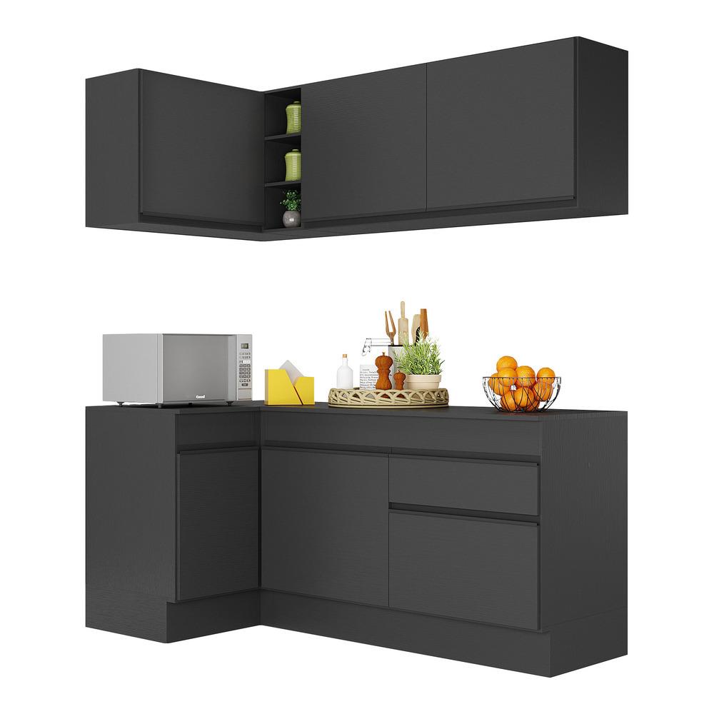 Cozinha Compacta de Canto Veneza GB Multimóveis MP2056 com Armário e Balcão Preta