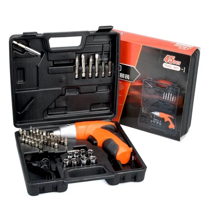 Parafusadeira Sem Fio Recarregável Com Maleta 47 Bits Chaves Peças 110v/220v Mini Furadeira Usb Elétrica Bateria Ferramentas