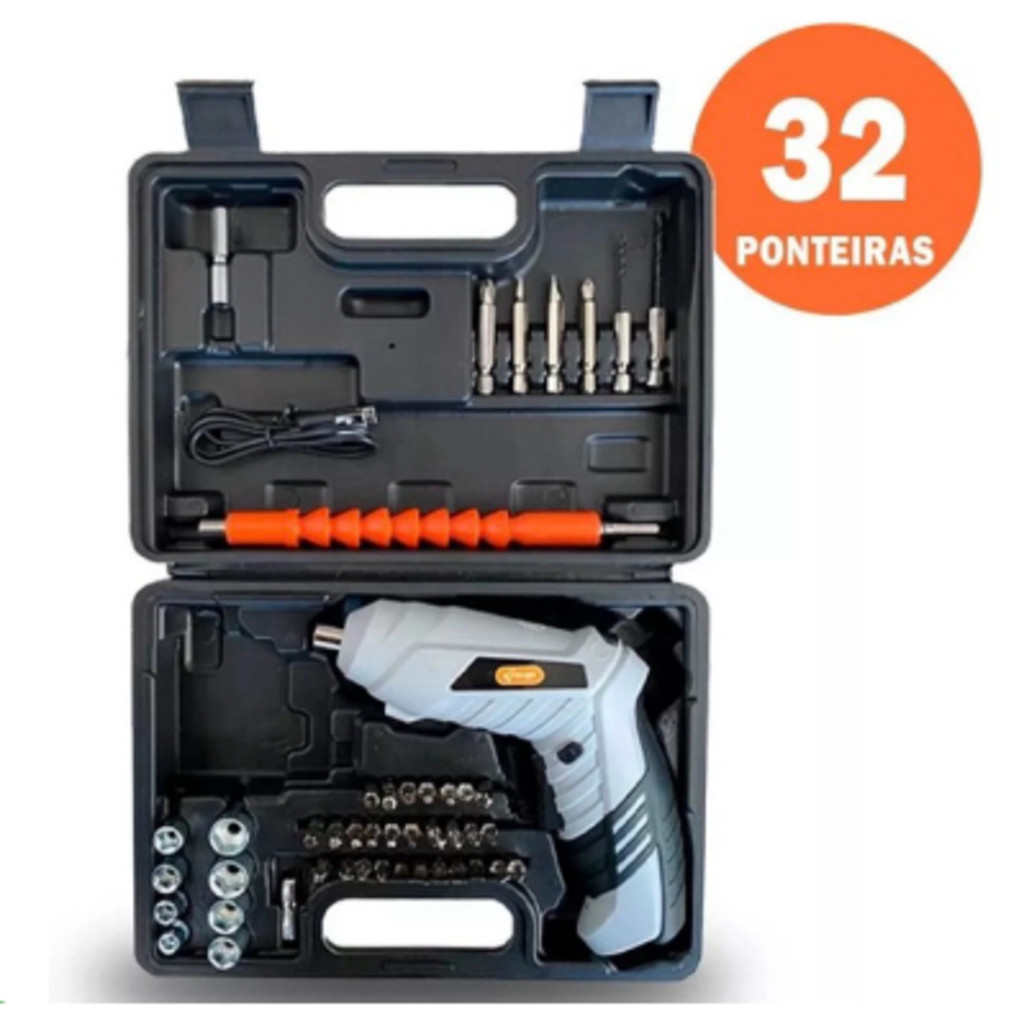 Parafusadeira Sem Fio portátil Recarregavel 47 ponteiras + maleta com acessórios