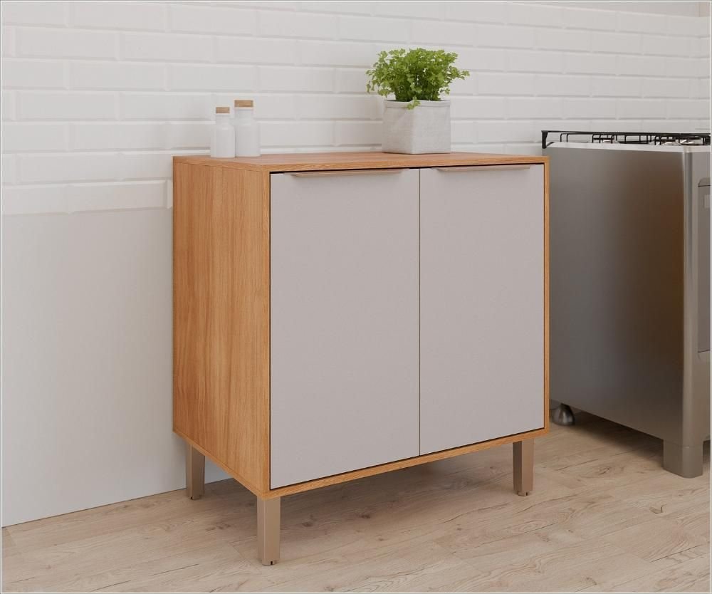 Balcão de Cozinha 80cm Divina Celeste 100% Mdf 2 Portas Cinamomo Off White Mgm Moveis