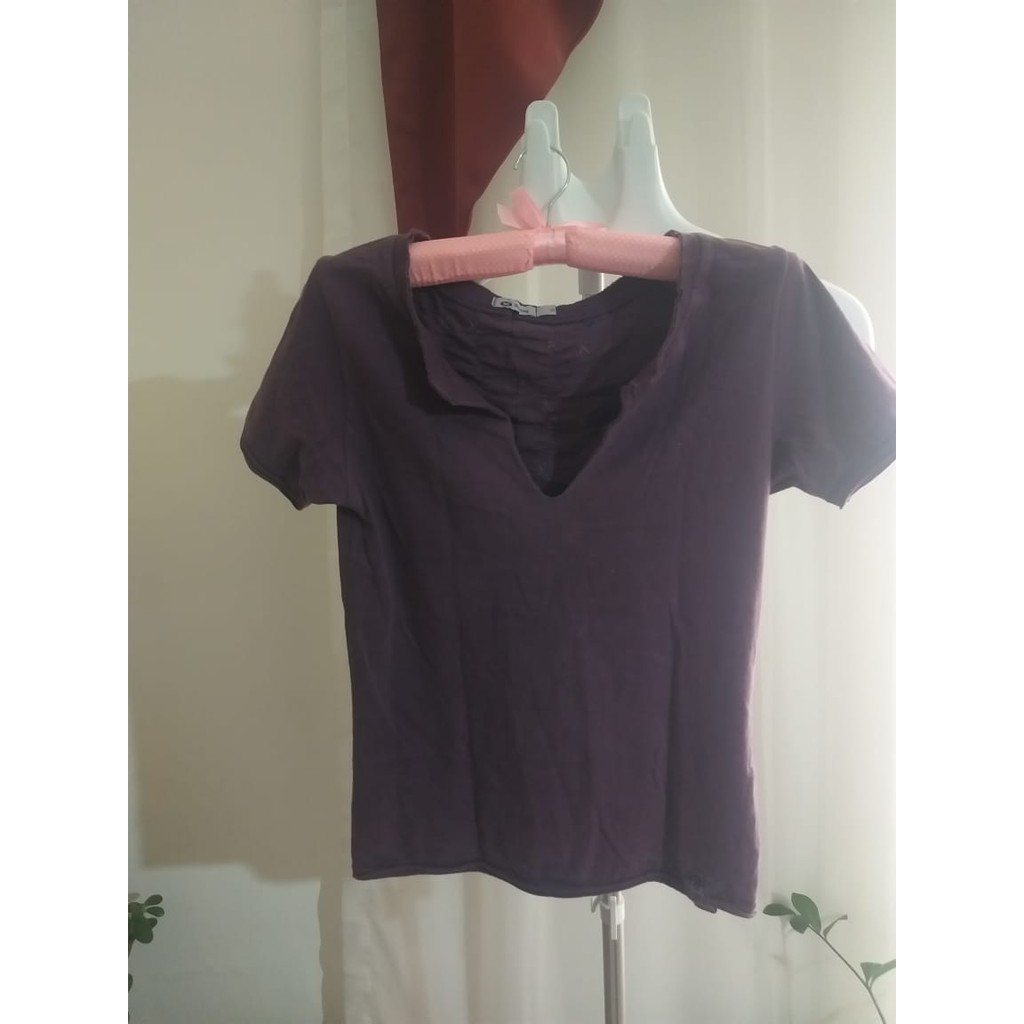 Blusa Feminina Manga Curta Roxa decote em V e costas com detalhes