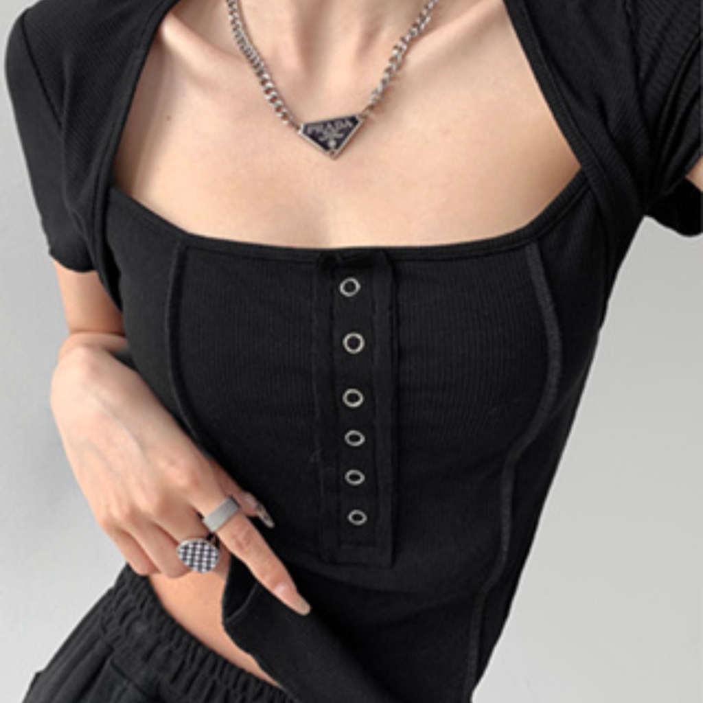 Blusa Feminina com Decote Quadrado Manga Curta E Botões 7010