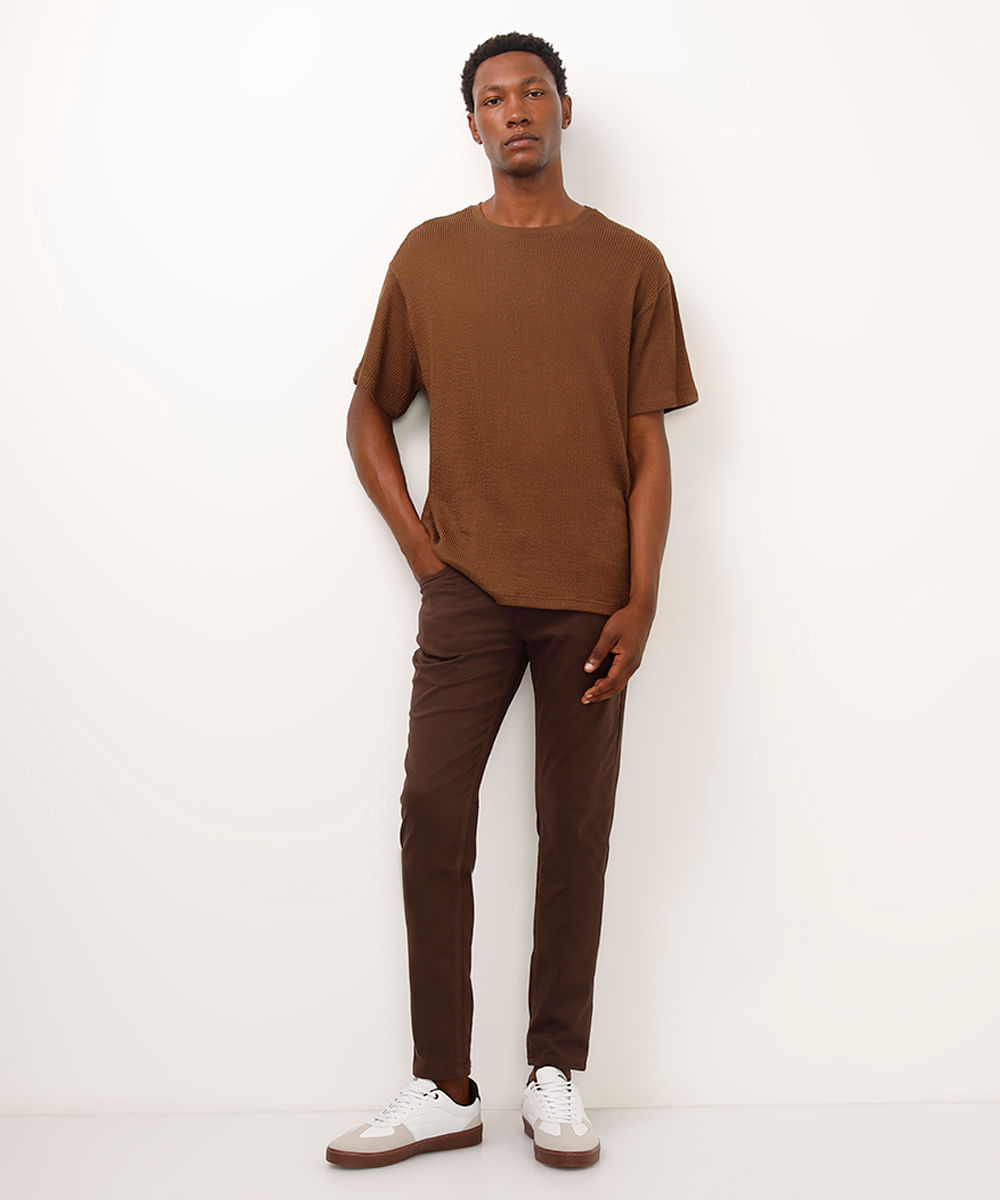calça jogger slim de sarja amaciada com bolsos bege escuro