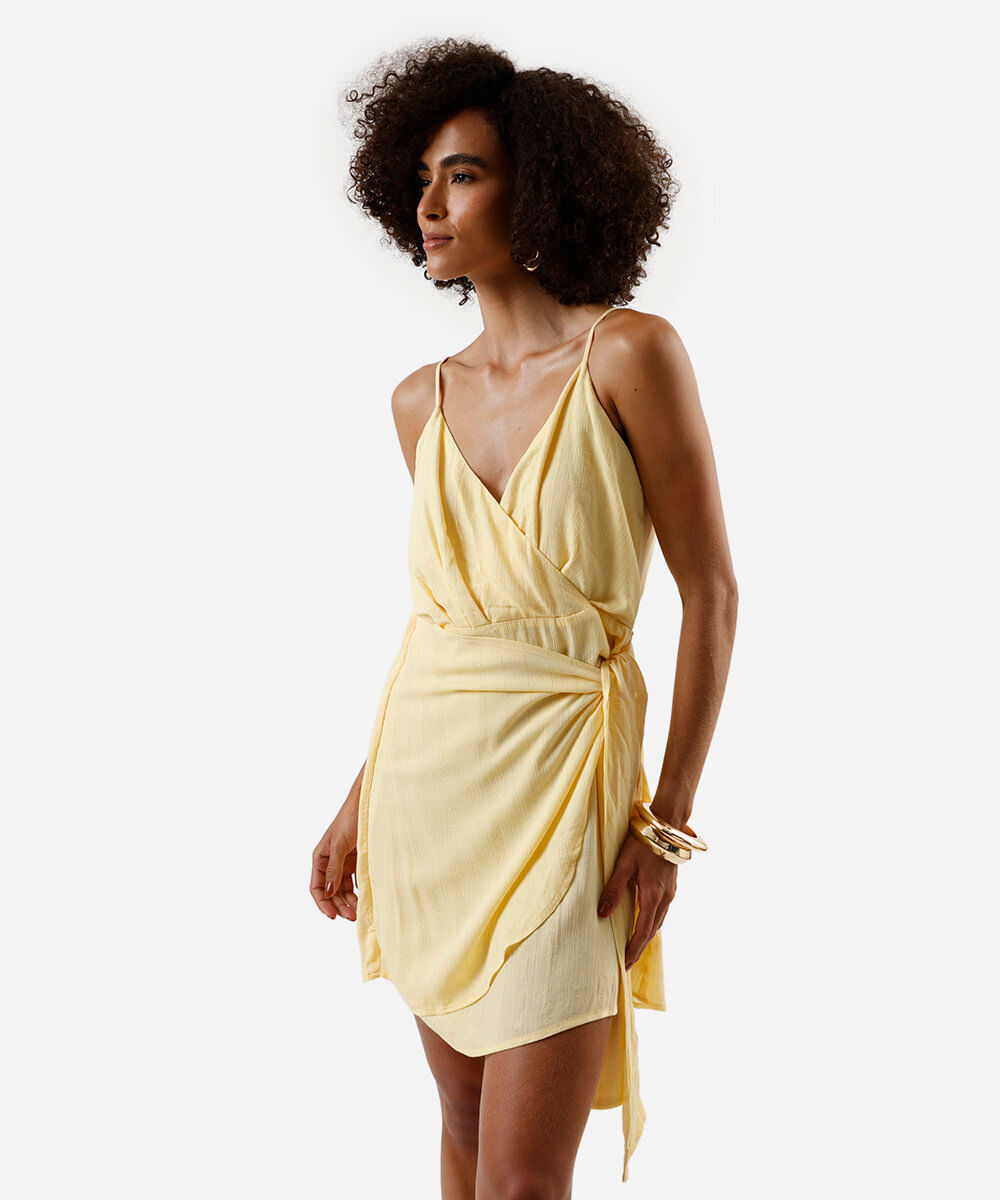 vestido curto de viscose com lurex listrado amarelo