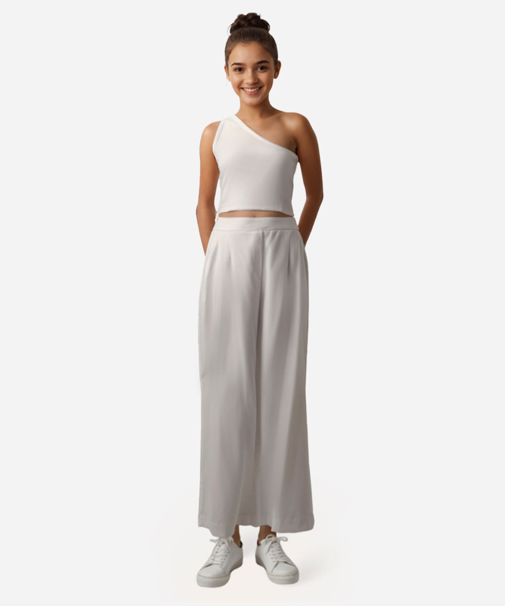 calça wide leg de alfaiataria com pregas plus size mindset off white