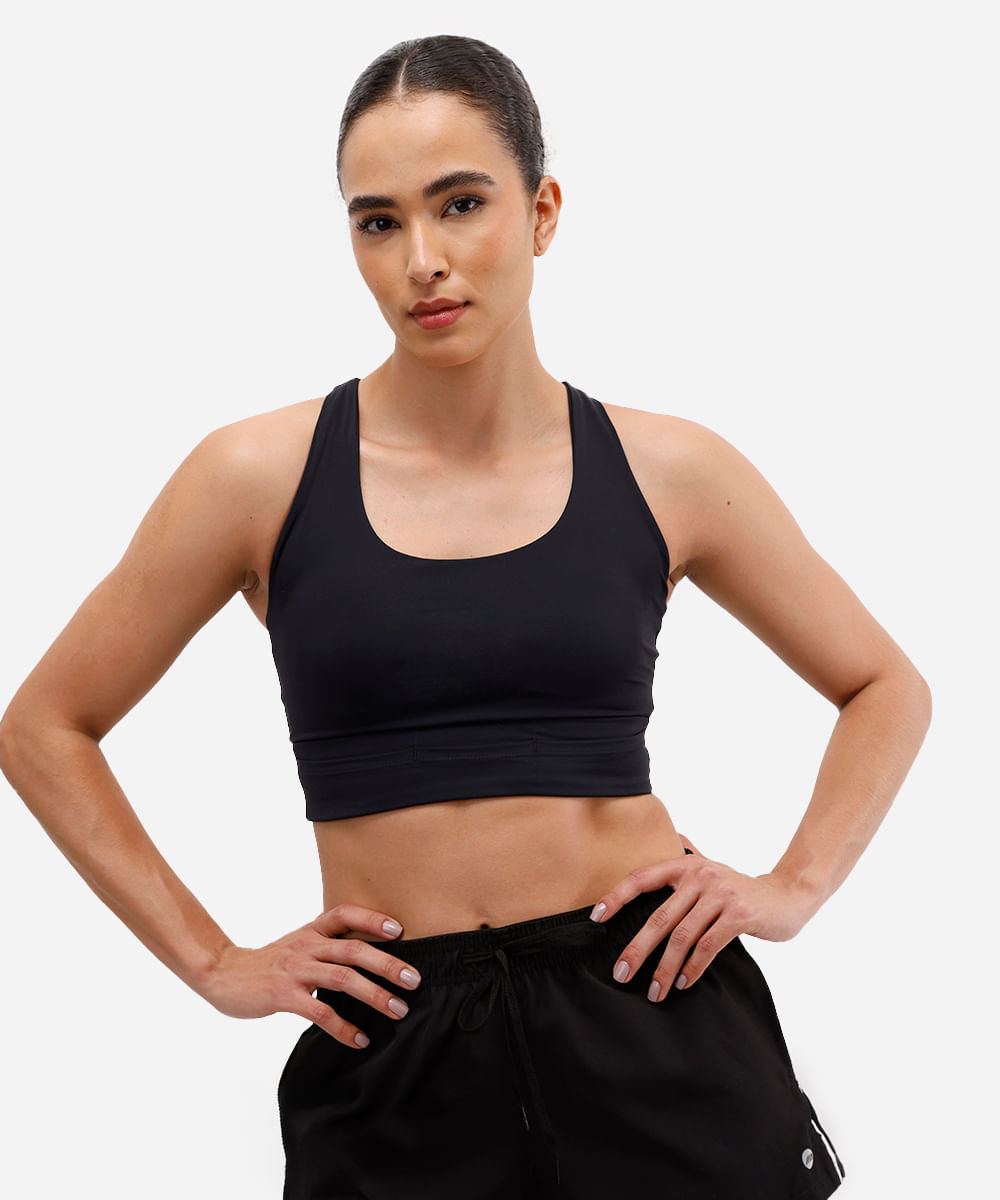 top canelado decote nadador com bojo removível esportivo ace preto