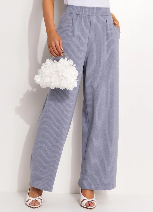calça wide leg de alfaiataria risca de giz azul
