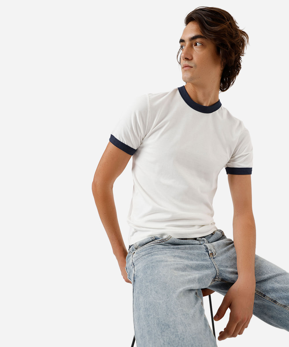 camiseta de algodão manga curta copinho bicolor off white