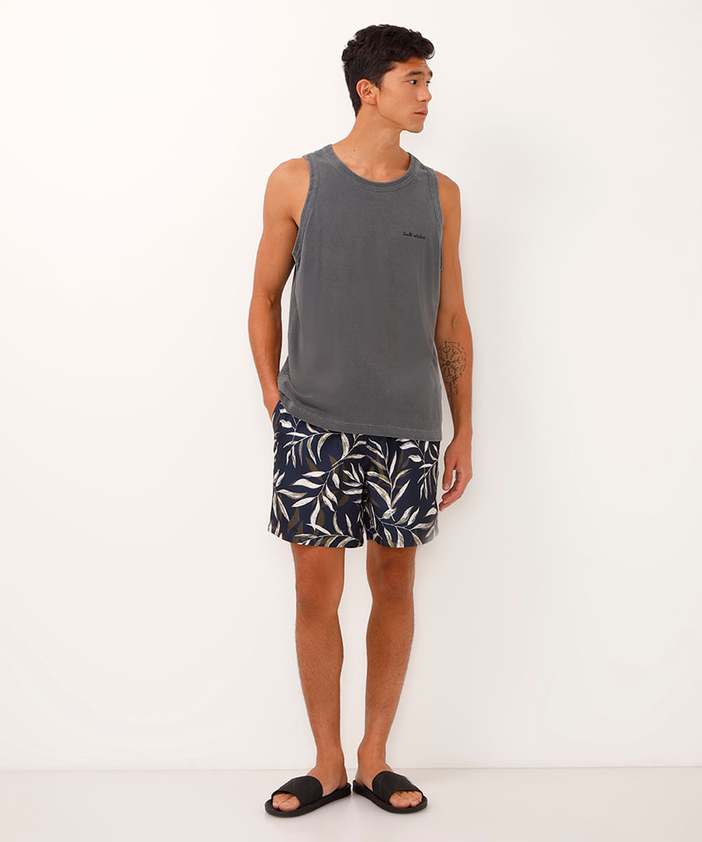 short cós com elástico folhagem azul