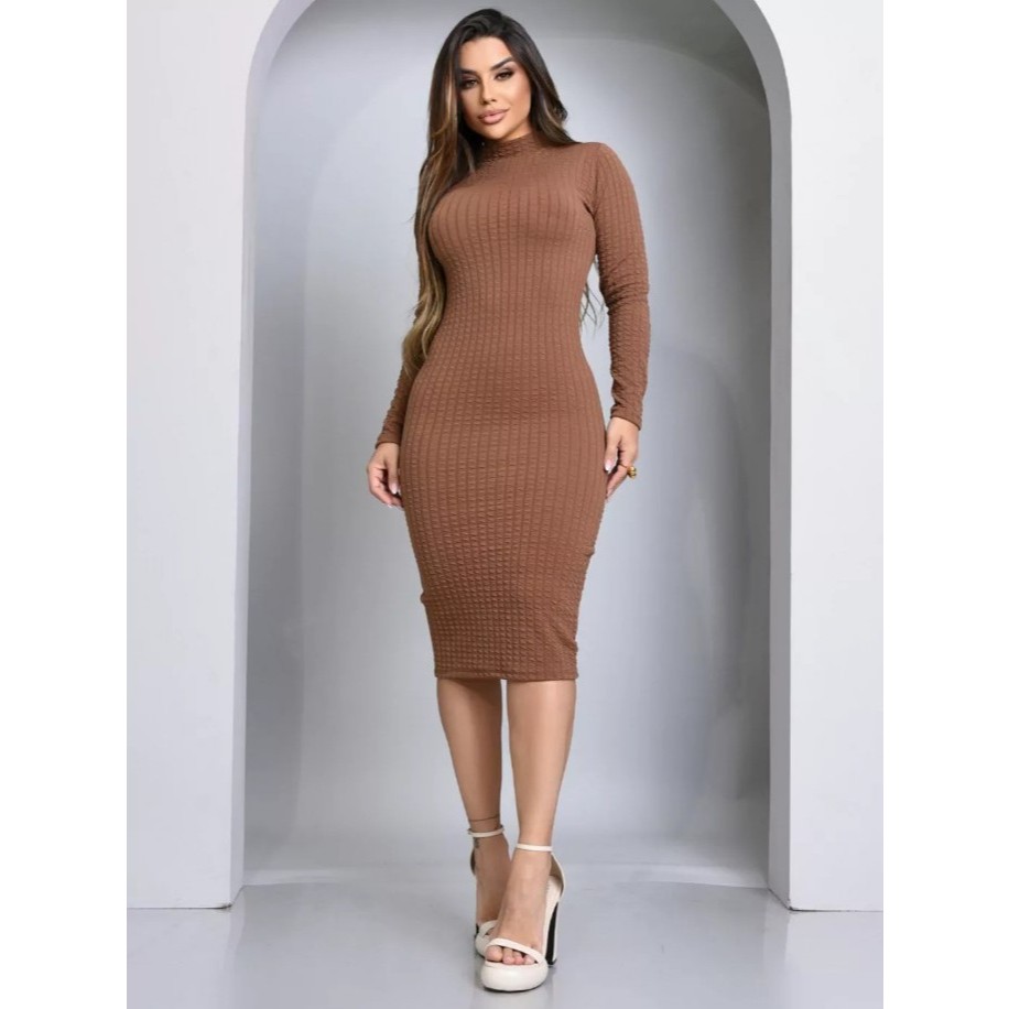 Vestido Manga Longa Feminino Inverno Em Suplex Gola Alta