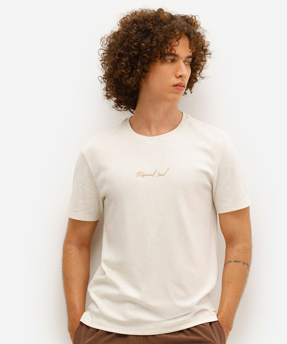 camiseta de algodão juvenil texturizada com bolso manga curta off white