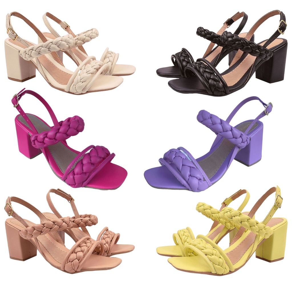 Sandália Feminina Salto Grosso Quadrado Saltinho Trança Sapato Conforto