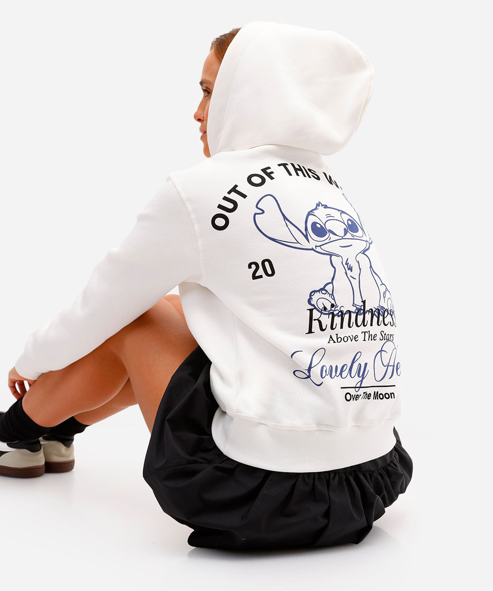 blusão feminino de moletom felpado com capuz stitch off white