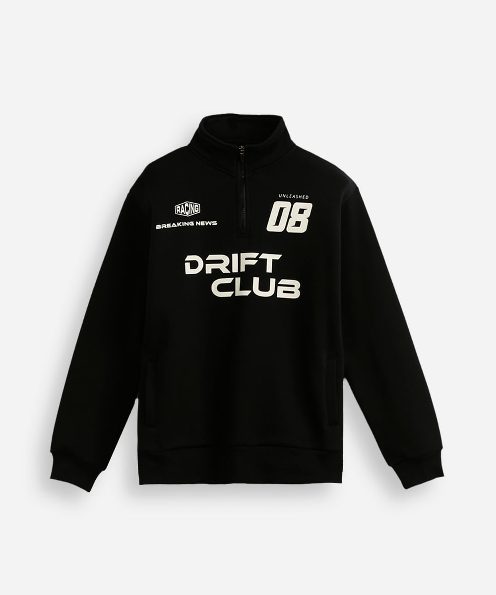 blusão de moletom juvenil gola alta com zíper preto