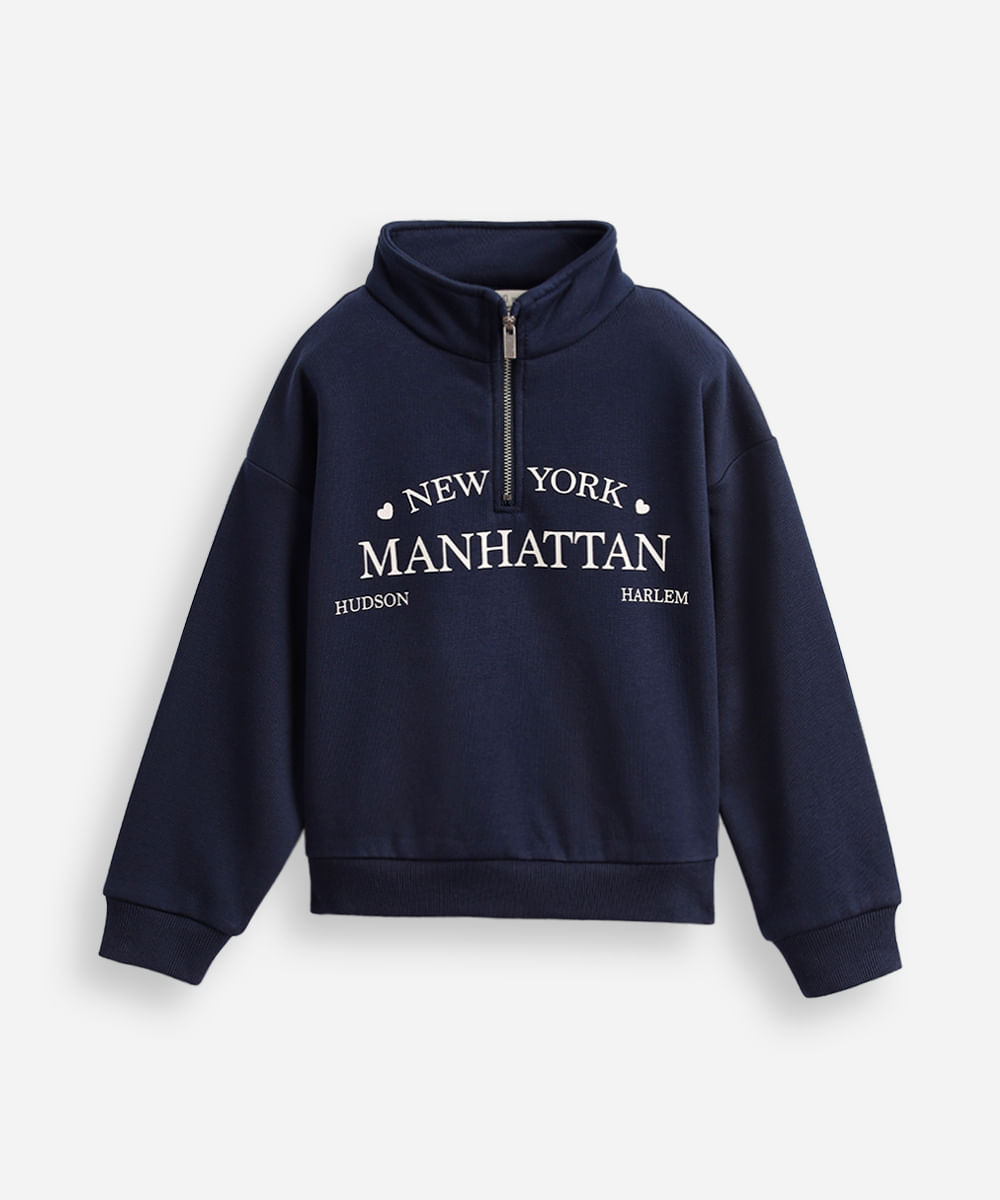 blusão de moletom infantil gola alta com zíper azul