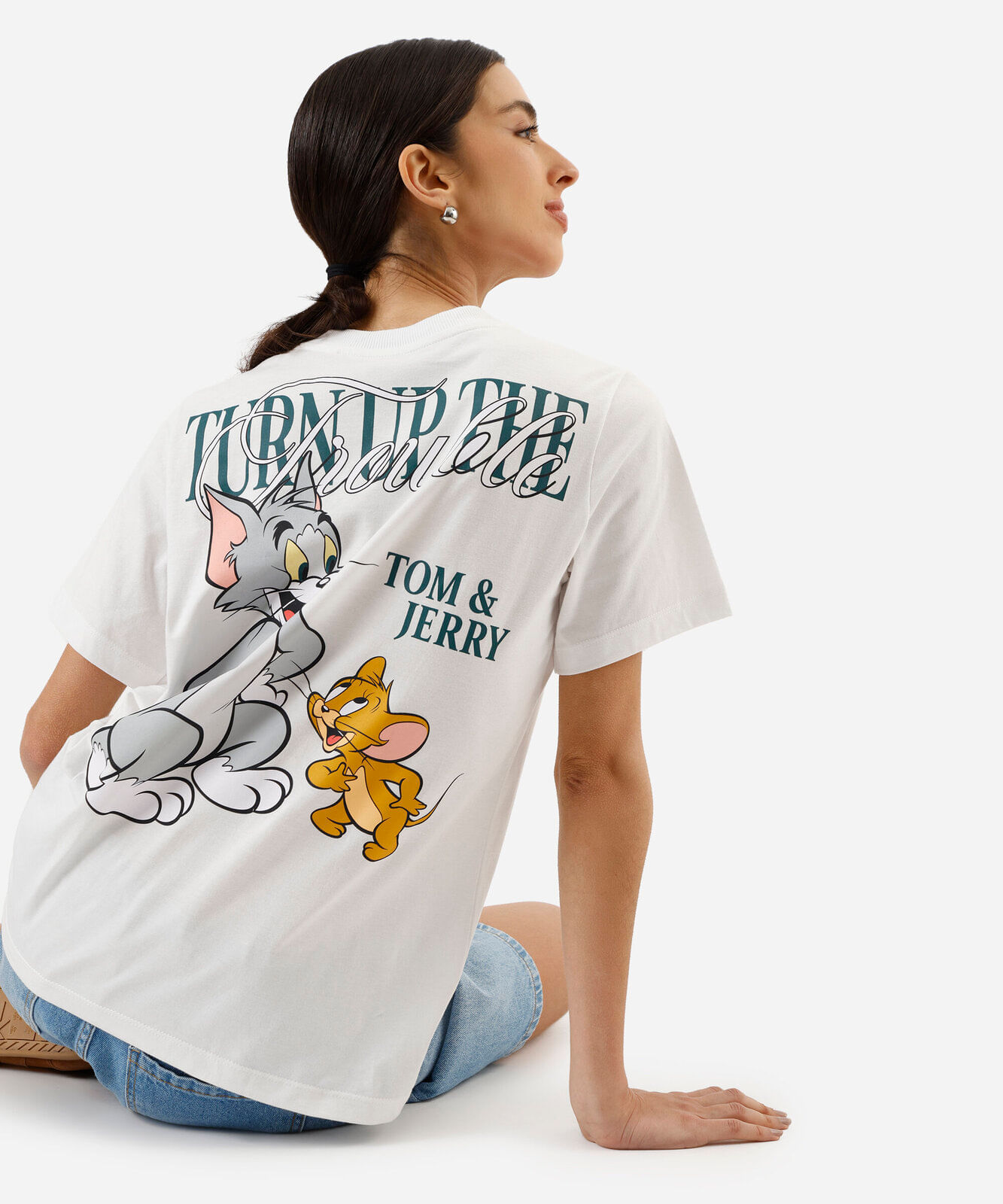 Camiseta Tom e Jerry Off White Algodão Casual Premium Lançamento