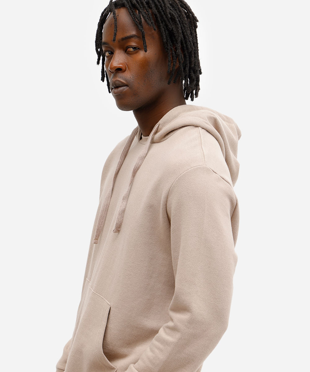 blusão masculino de moletom felpado com capuz bege