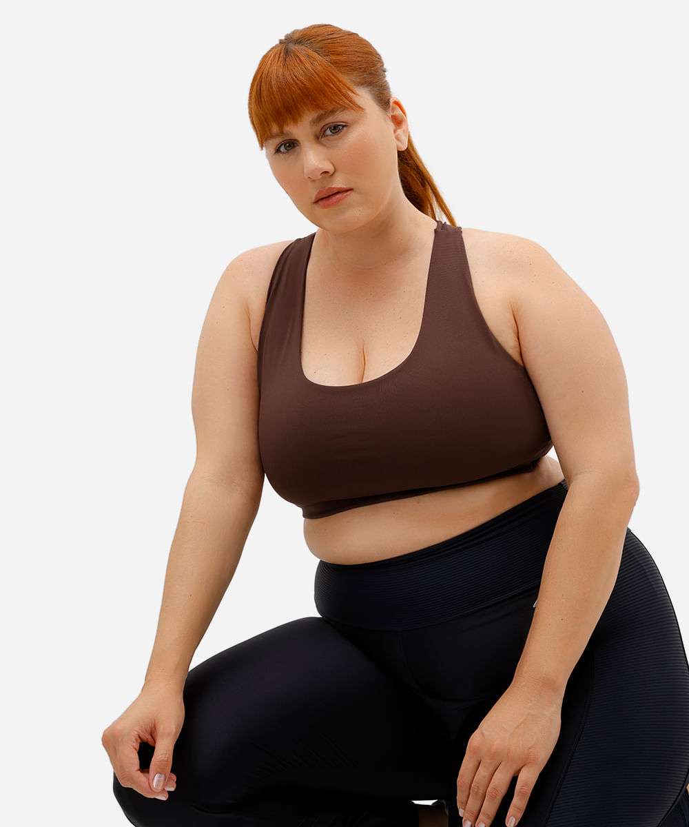 top feminino esportivo ace decote nadador plus size marrom