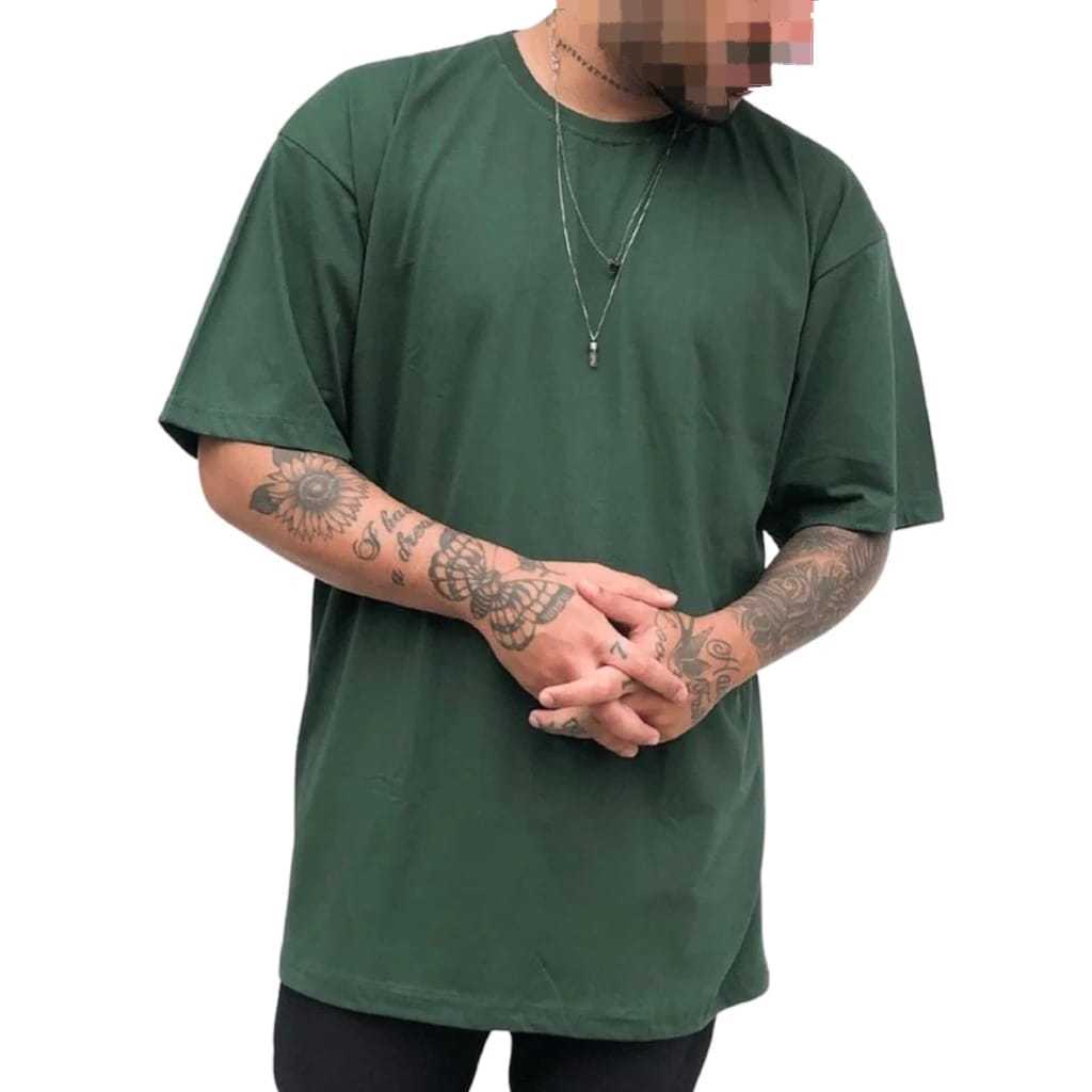 Camiseta Oversized Basic Streetwear Masculina Verde Militar - Preta