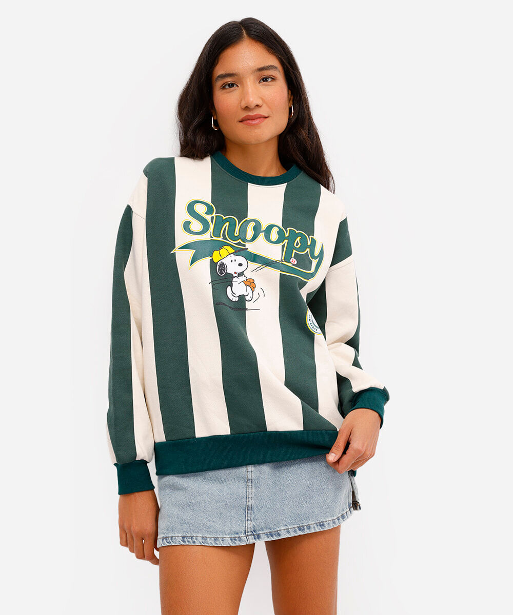 blusão feminino de moletom felpado snoopy listrado verde