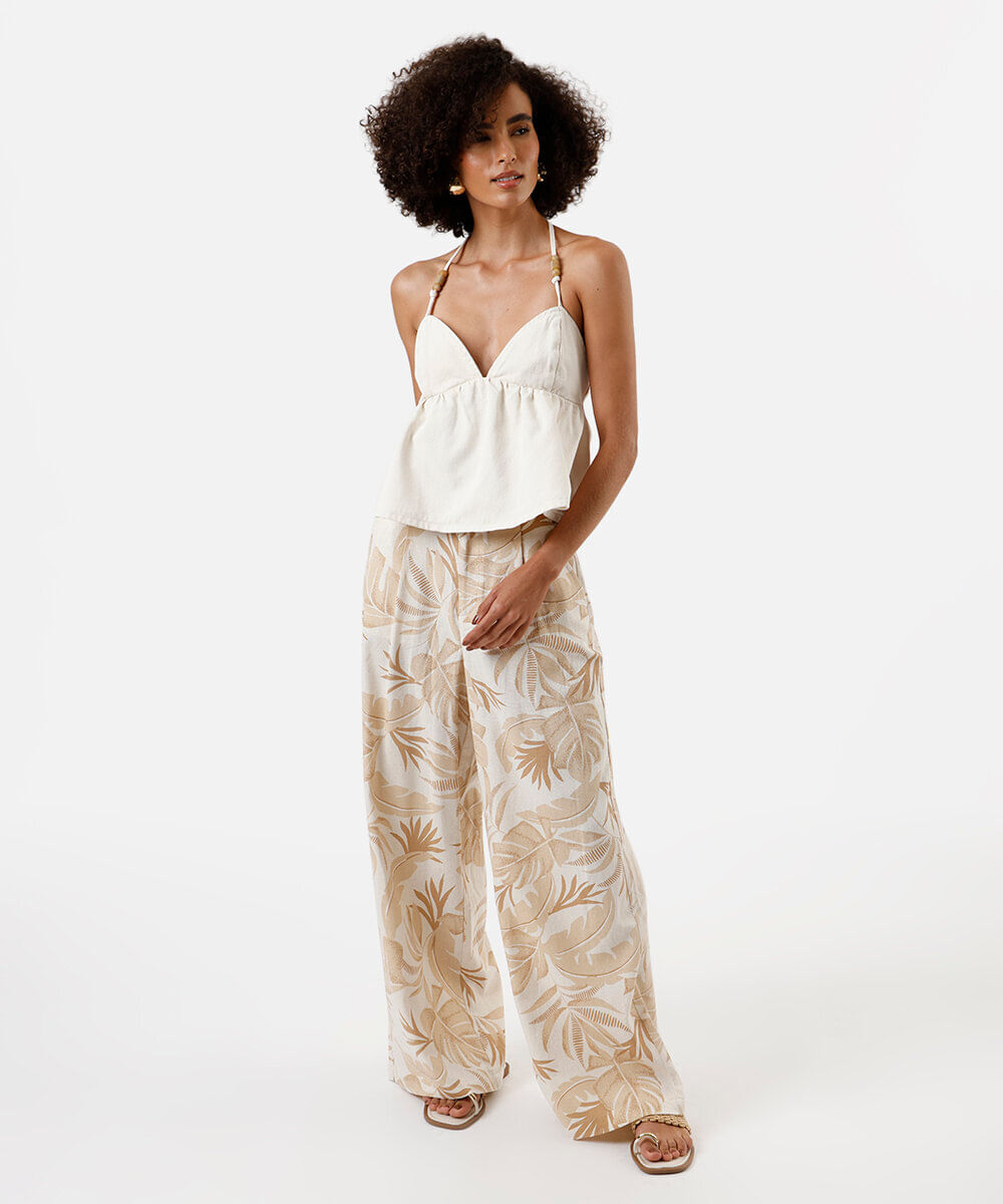 calça wide leg feminina de alfaiataria com pregas e linho mindset azul
