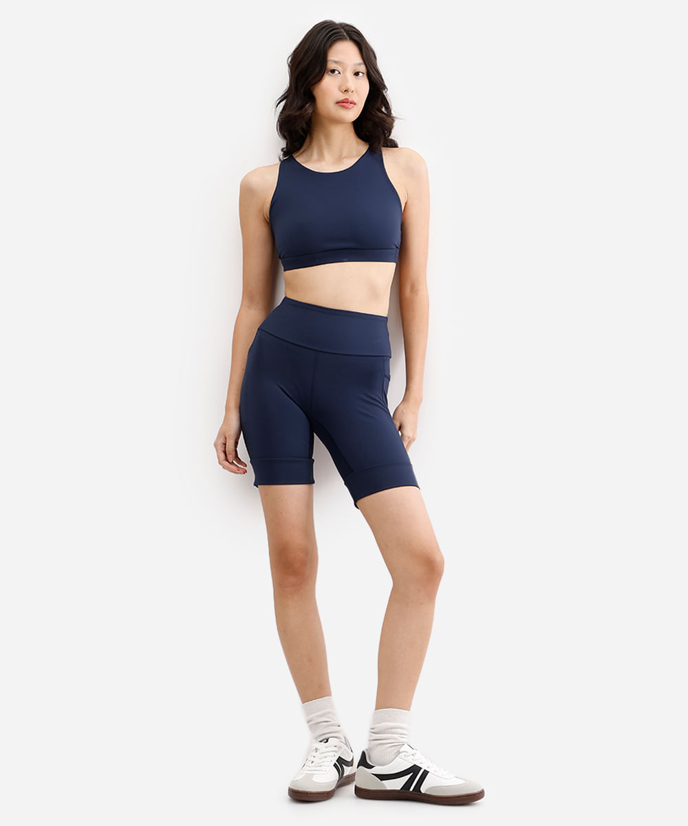 bermuda ciclista feminina esportiva ace com nervura plus size azul