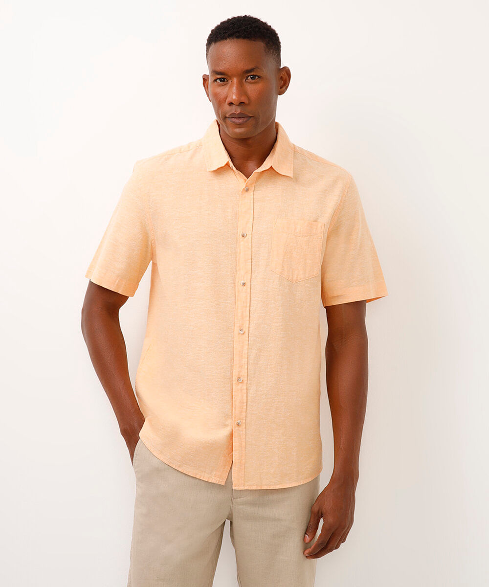 Camisa manga curta social masculina de linho com gola padre - camisa para verão - camisa fresca