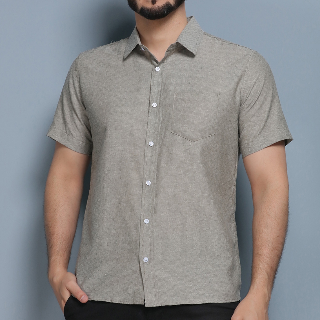 camisa masculina de algodão manga curta com bolsos marrom