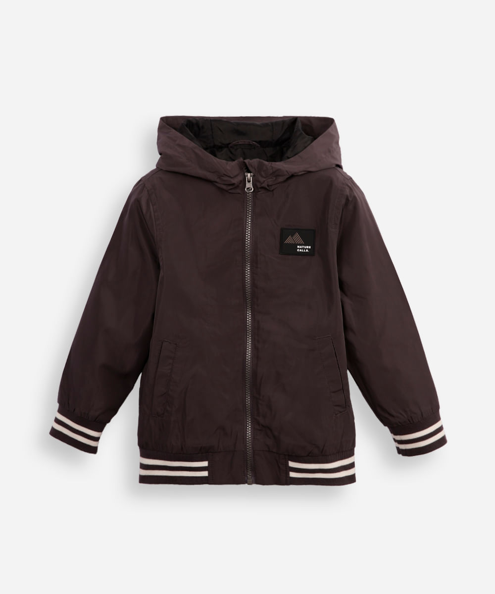 jaqueta corta vento infantil com capuz cinza