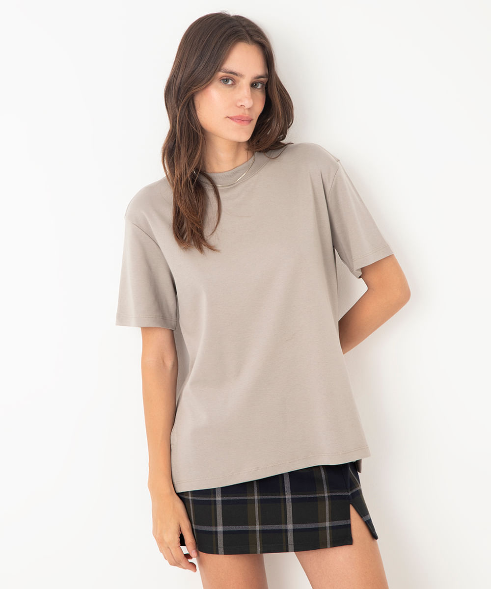 camiseta de algodão peruano manga curta cinza